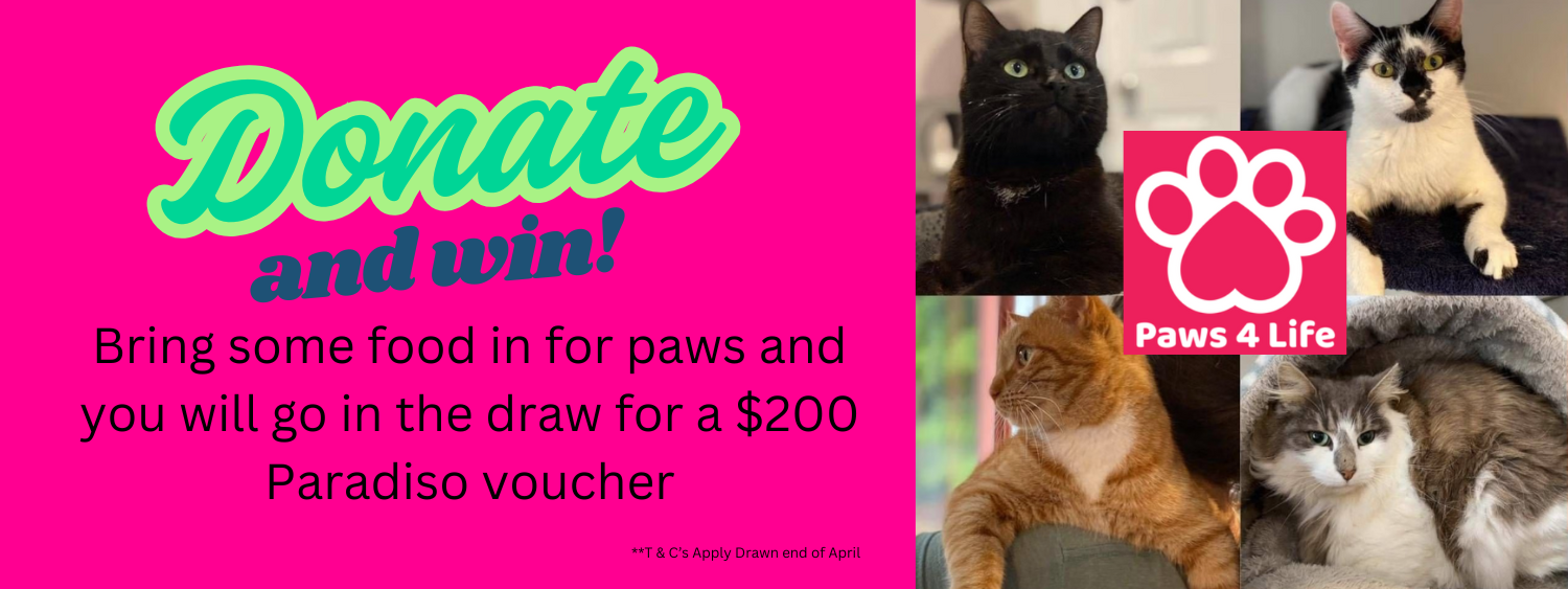 Its important to the Paradiso crew that we give back and support causes where we can. This months give back is for Paws 4 Life.